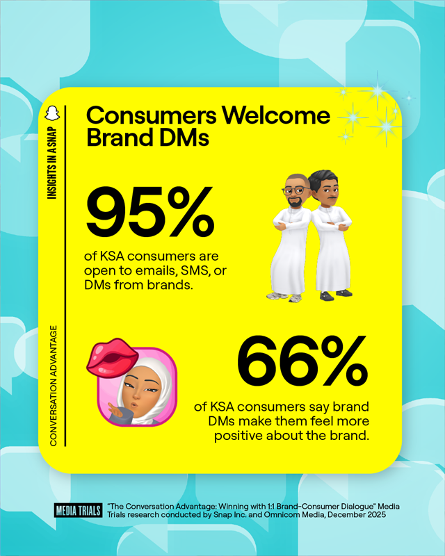 أصدرت سناب شات، بالتعاون مع شبكة الشرق الأوسط للاتصالات التسويقية (MCN)، بحثاً جديداً حول دور التواصل المرئي الفردي المباشر في إعادة تشكيل علاقة العلامات التجارية بالمستهلكين في المملكة العربية السعودية.