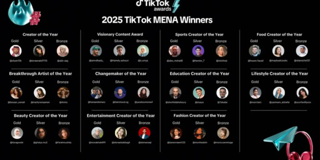 استضافت منصة “تيك توك، مساء أمس، حفل جوائزها السنوي لمنطقة الشرق الأوسط وشمال أفريقيا في مركز دبي المالي العالمي (ذا جيت)، وذلك للاحتفاء بأبرز صنّاع المحتوى في المنطقة الذين كان لهم تأثير متميز خلال عام 2025.